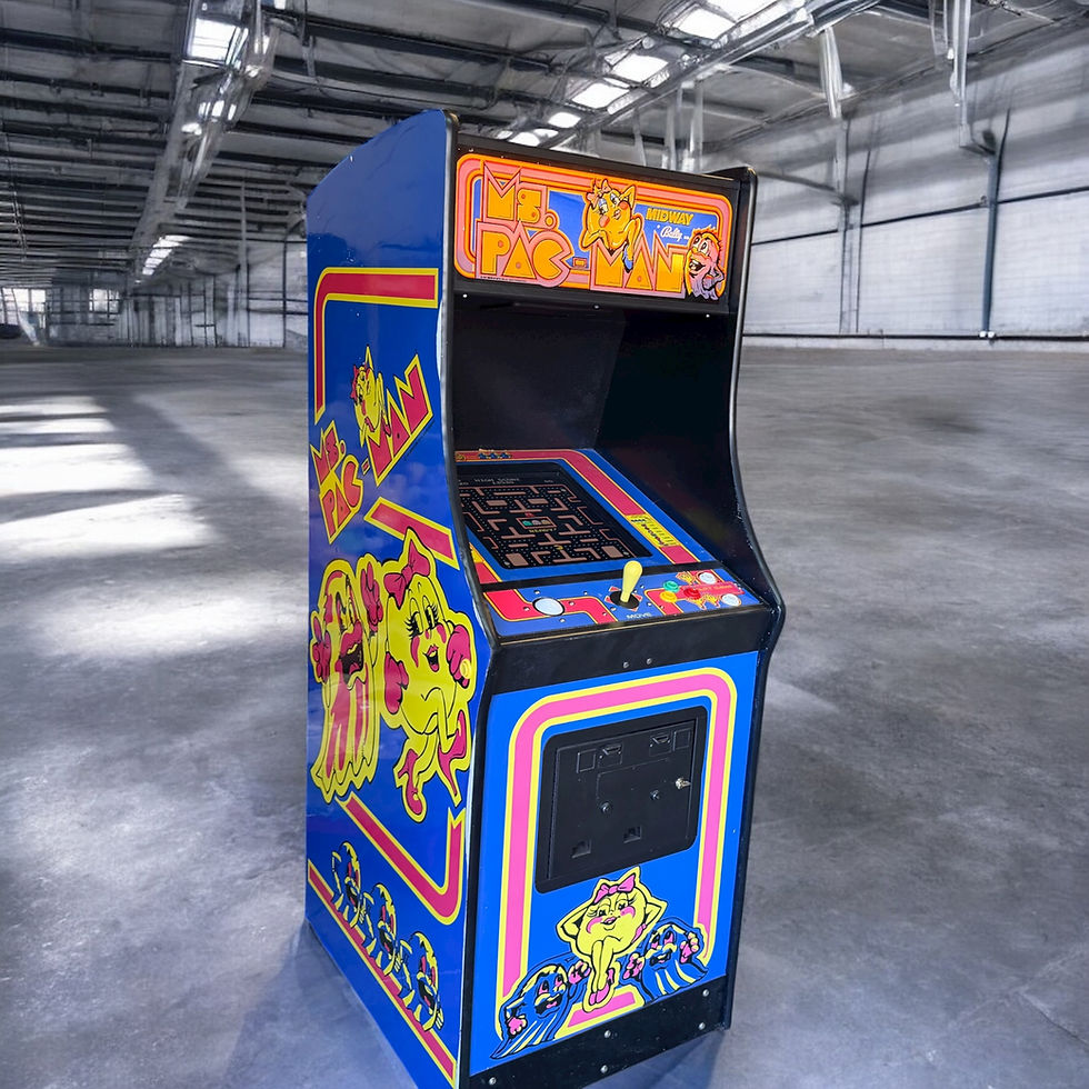 - Just arrived at our warehouse … Refurbished original Ms PAC-Man arcade machine with new control panel, buttons and Joystick- refurbished upgraded LCD monitor, power supply, trackball and new circuit board. This machine plays 500 classic games and includes a trackball panel to play games like super breakout, millipede and centipede. It is currently set on FreePlay, but can be upgraded to take coins to make at your location for $199 - Comes with a 1 year warranty on all major components-